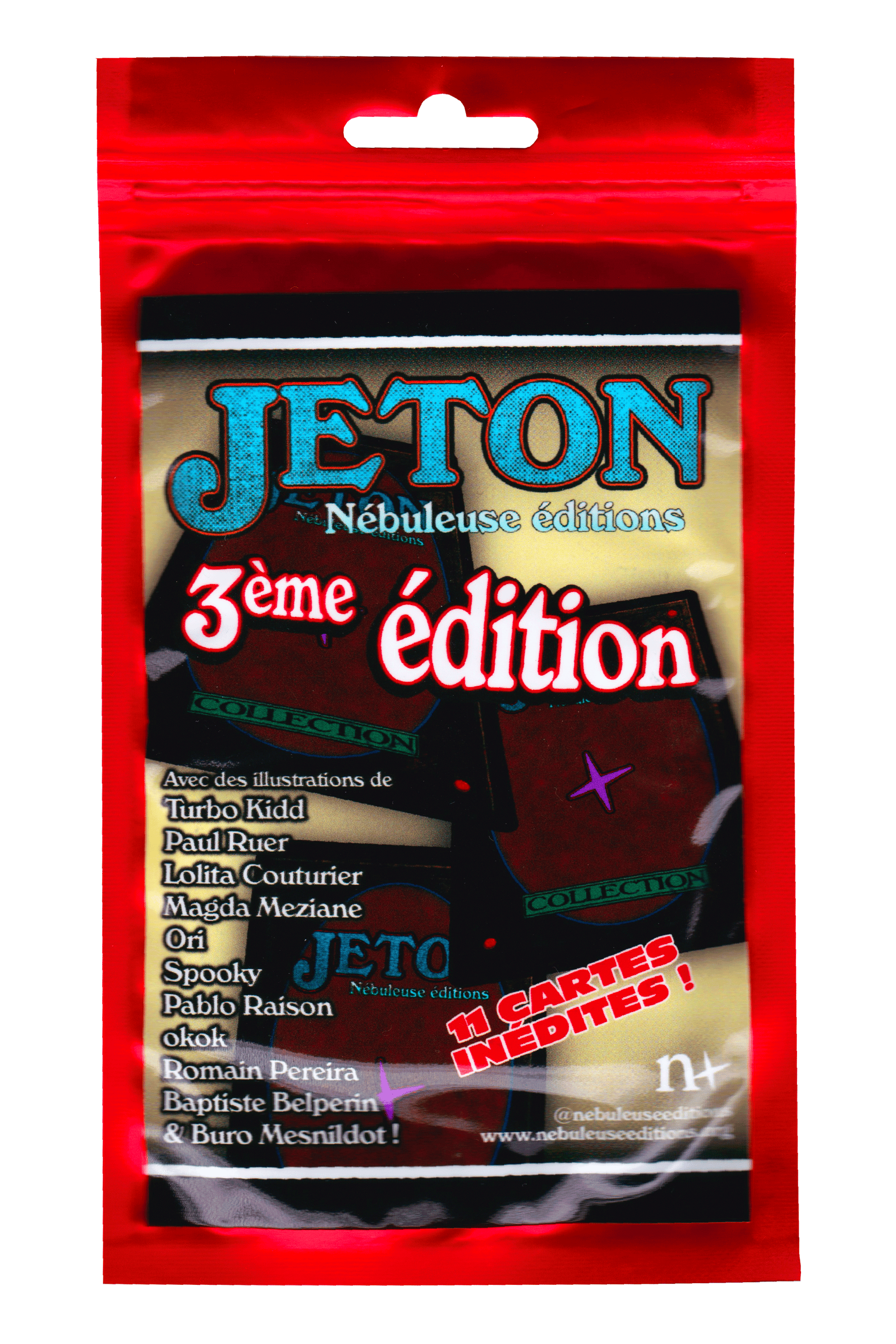 Voici la troisième édition de Jeton : un booster de 11 cartes de jeu inédites, dessinées par 11 illustrateur.ices différent.es !